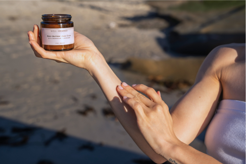 A little goes a long way, allow the butter to melt into skin.